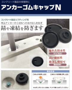 アンカーゴムキャップは、浸水・凍結・防錆対策としてIPX7相当の水密性能を実現。Dリフトアンカー・DHLアンカーシステム両対応で、ジャパンライフ、コバックス、北海道はフジテック産業より提供。