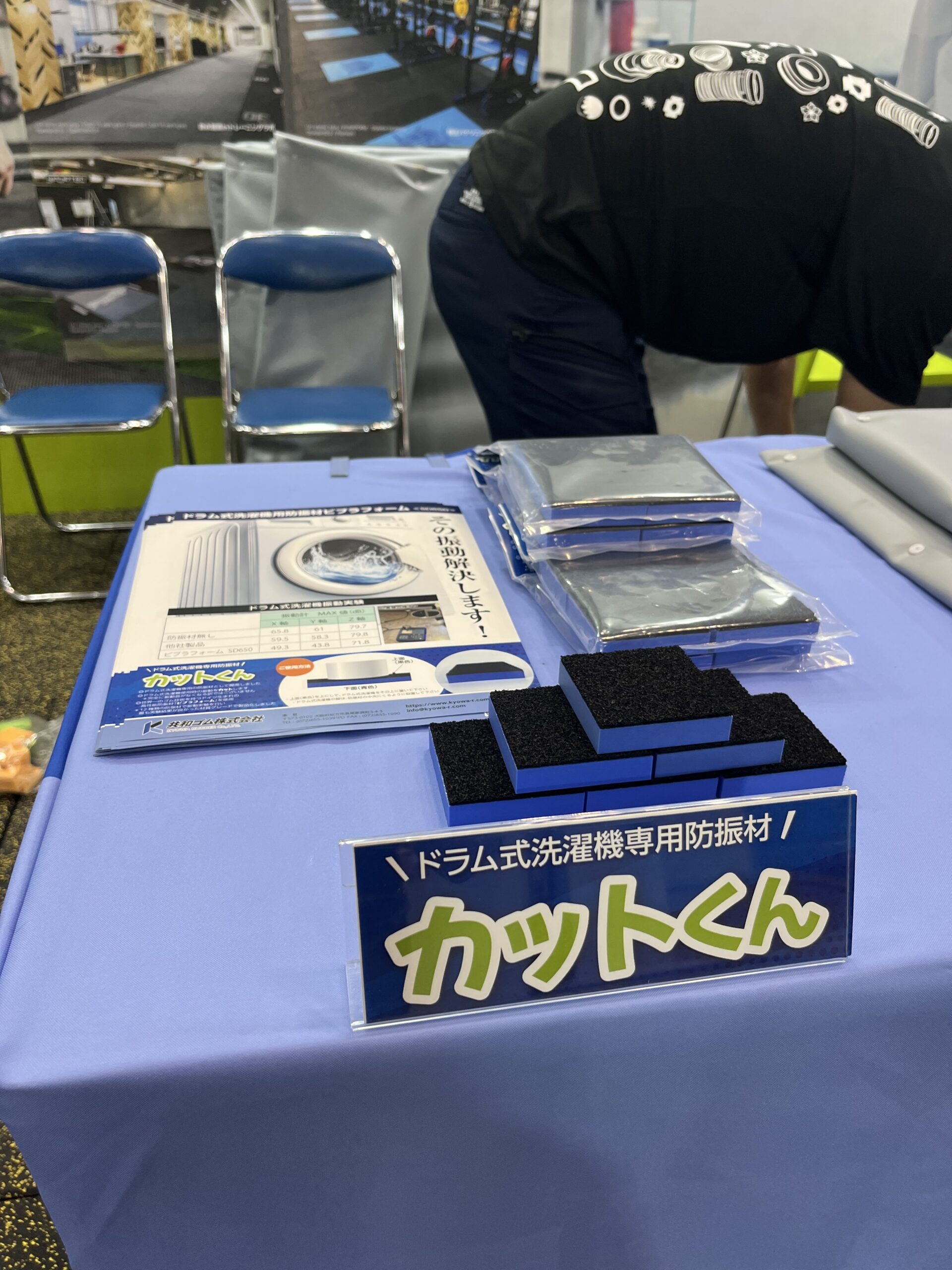 弊社の展示物は、「超高比重ゴム」・吸音材の「共和フォーム」・防振材の「ビブラプレート」・ドラム式洗濯機用防振材「カットくん」の4製品を展示致しました。