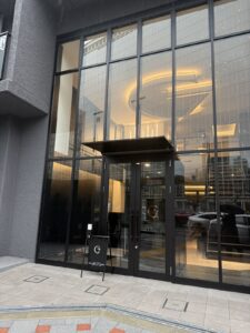 ガラス張りのエントランスが印象的で、明るく開放感のある空間となっています。